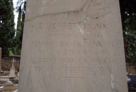 Ταφικό μνημείο της Bettina von Savigny-Σχινά στο Προτεσταντικό Κοιμητήριο του A’ Νεκροταφείου Αθηνών (φωτογραφία της συγγραφέως, Μάιος 2007).