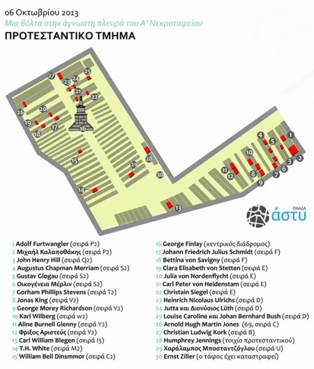 Χάρτης του Προτεσταντικού τμήματος του Ά Νεκροταφείου. Δημοσιεύεται στον ιστότοπο της «ομάδας άστυ».