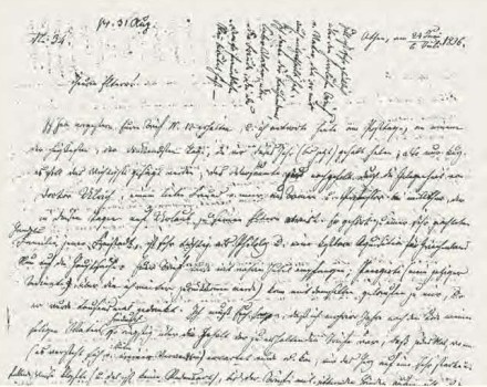 Απόσπασμα από την επιστολή του Κωνσταντίνου Σχινά προς τους γονείς της Μπετίνα με ημερομηνία 24 Ιουνίου/6 Ιουλίου 1836 (Universitäts- und Landesbibliothek Münster, Nachlass Savigny 12,042).
