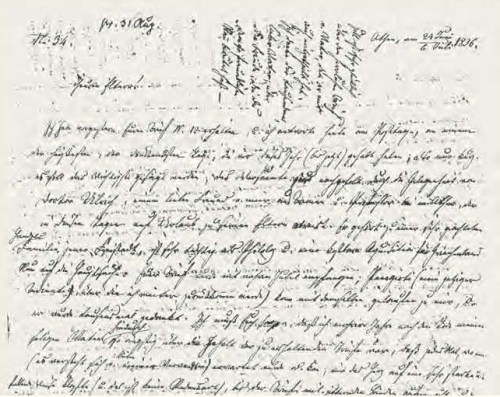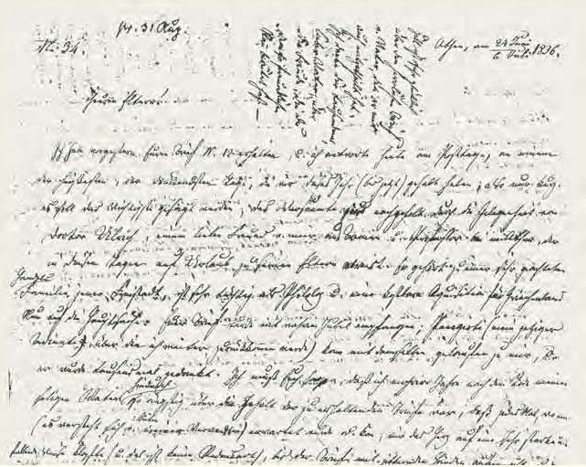 Απόσπασμα από την επιστολή του Κωνσταντίνου Σχινά προς τους γονείς της Μπετίνα με ημερομηνία 24 Ιουνίου/6 Ιουλίου 1836 (Universitäts- und Landesbibliothek Münster, Nachlass Savigny 12,042).