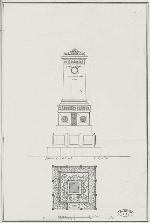 Ένα μνημείο για την Μπετίνα – Όπως το σχεδίασε ο Σταμάτης Κλεάνθης » Σχέδιο του Κλεάνθη για το ταφικό μνημείο της Bettina von Savigny-Σχινά.