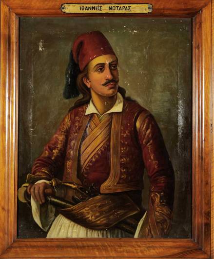 Ιωάννης Νοταράς, έργο αγνώστου, ελαιογραφία σε μουσαμά. Εθνικό Ιστορικό Μουσείο. (Τρίκαλα Κορινθίας 1805 – Ανάλατος/Φάληρο Αττικής 1827). Σκοτώθηκε το 1827 κατά την καταστροφική για τις ελληνικές δυνάμεις μάχη του Ανάλατου.
