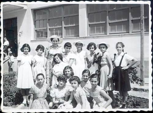 Β’ Δημοτικό Σχολείο Άργους. Τελειόφοιτες του Σχολείου με τη δασκάλα τους κ. Καλυψώ Καπλάνη. Αρχείο Ευανθία Λιολίτσα. Φωτογραφία από την ομάδα, «Παλιές φωτογραφίες του Άργους – Ταξίδι στο παρελθόν».