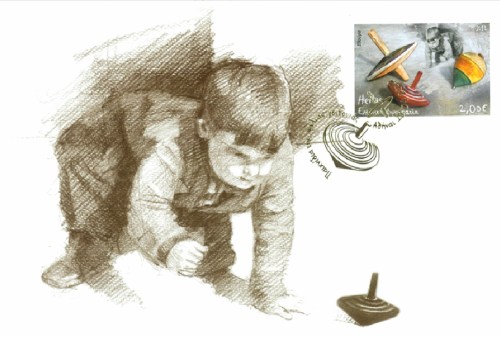 Σβούρα, από την Αναμνηστική Σειρά Γραμματοσήμων «Παιχνίδια της Παλιάς Γειτονιάς» που κυκλοφόρησε από τα Ελληνικά Ταχυδρομεία το 2012 και σχεδίασε η Ανθούλα Λύγκα.