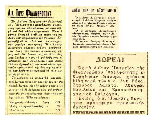 Δωρεές υπέρ του Λαϊκού Ιατρείου.