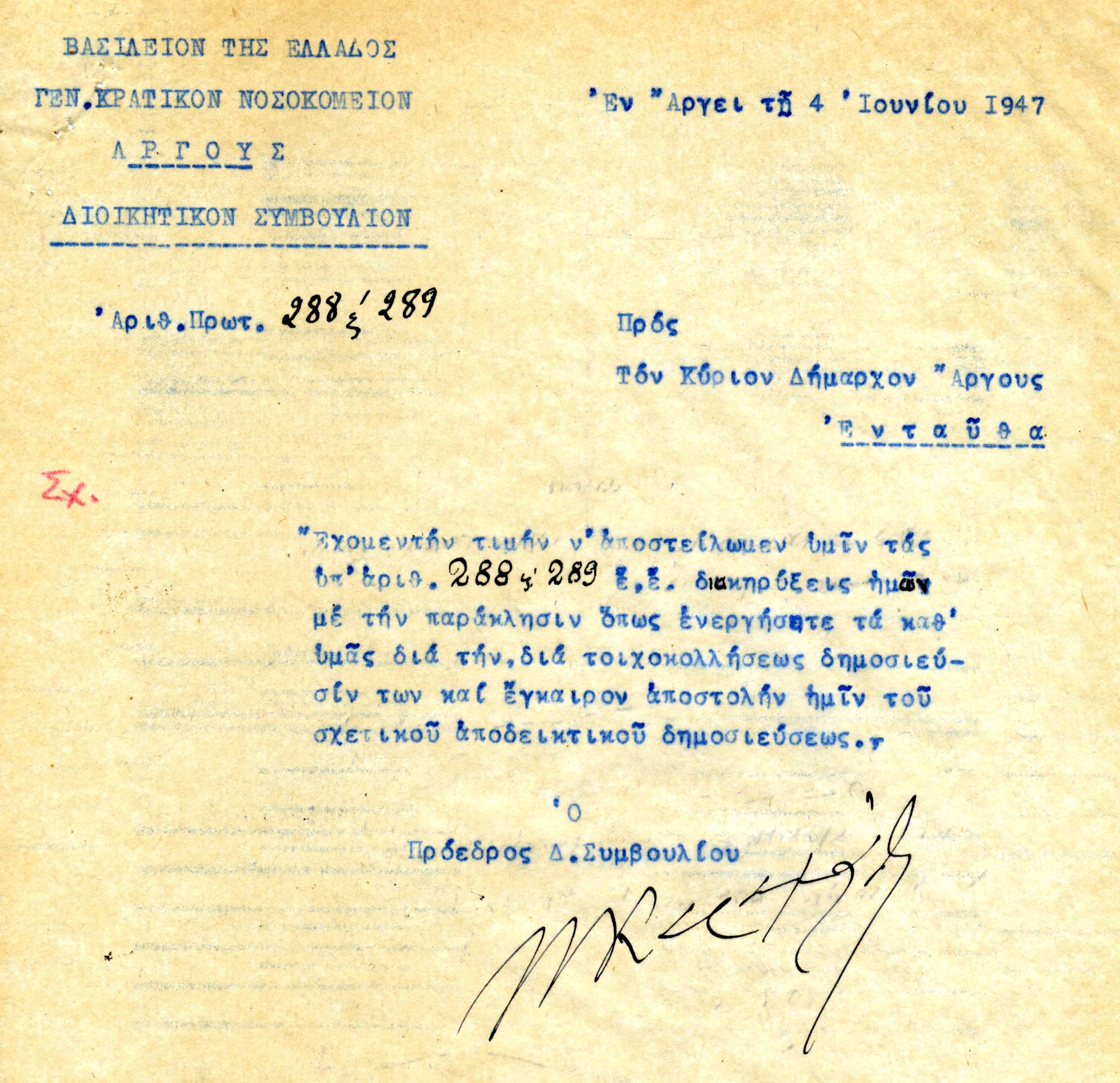 Ιστορικές στιγμές του Νοσοκομείου στο Άργος (μέρος I) » Η τοιχοκόλληση γινόταν και στο Δημαρχείο της πόλης.