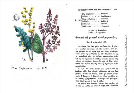 Βιβλίο βοτανικής του Διονυσίου Πύρρου του Θετταλού, 1838, από τη συλλογή του φαρμακείου Παπαγεωργίου.