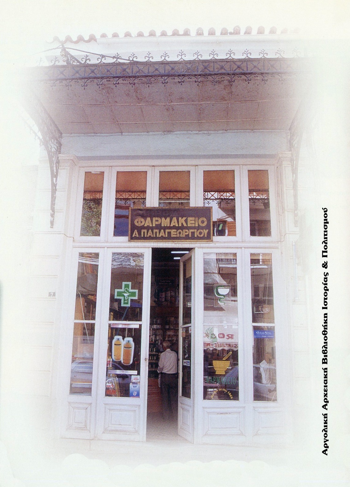 Εξωτερική άποψη του φαρμακείου Παπαγεωργίου στο Άργος.