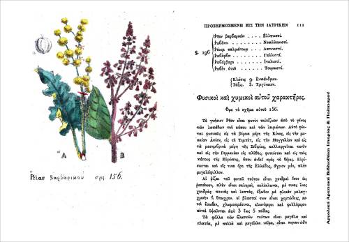 «Ρήον βαρβαρικόν», από το βιβλίου του Διονυσίου Πύρρου του Θετταλού, «Η «Βοτανική Πρακτική», που εκδόθηκε στην Αθήνα το 1838.