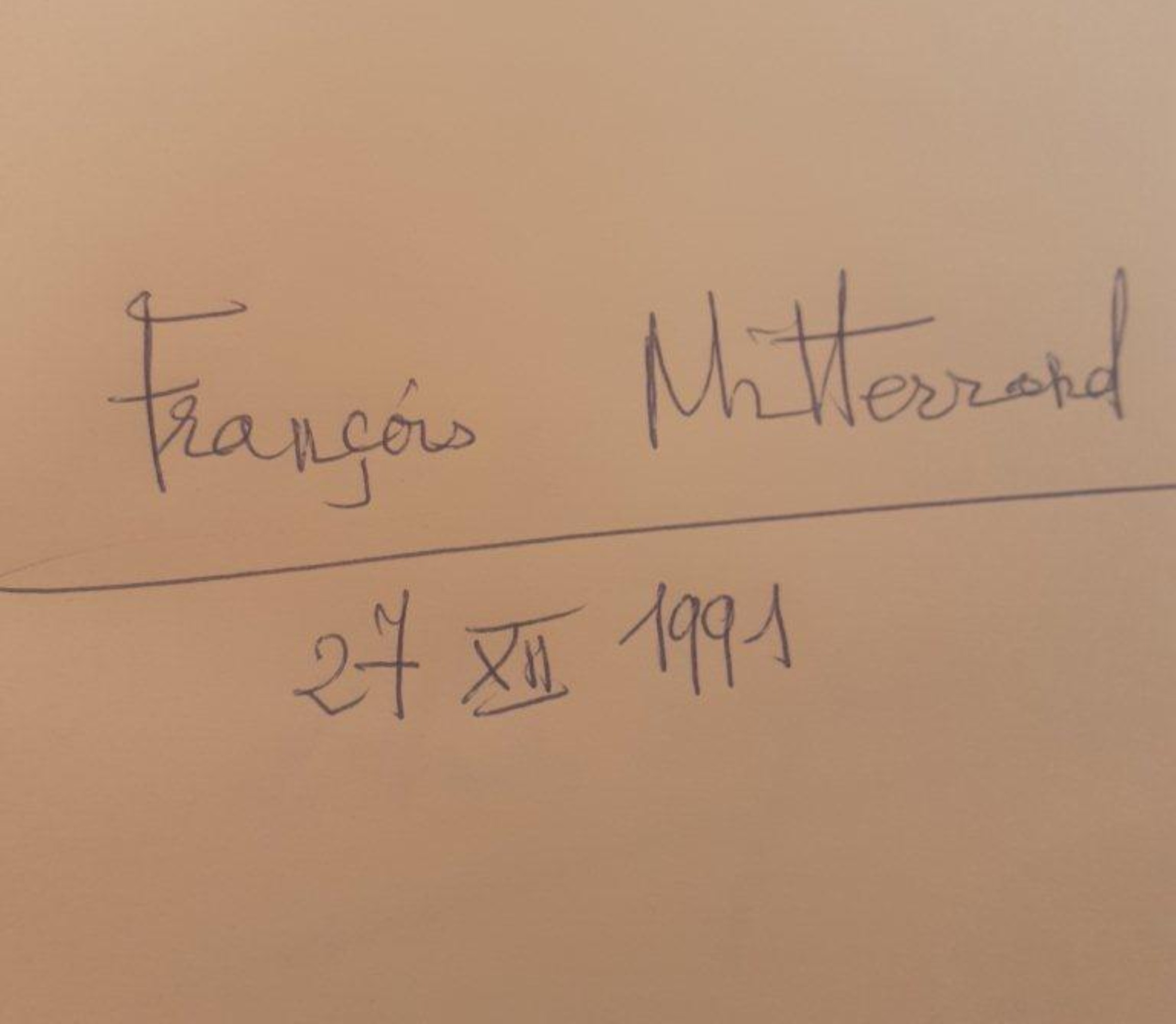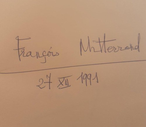 Αυτόγραφο του Φρανσουά Μιτεράν στον Δημήτρη Κωτσονάρο, την ημέρα αναχώρησής του από τους Μύλους.