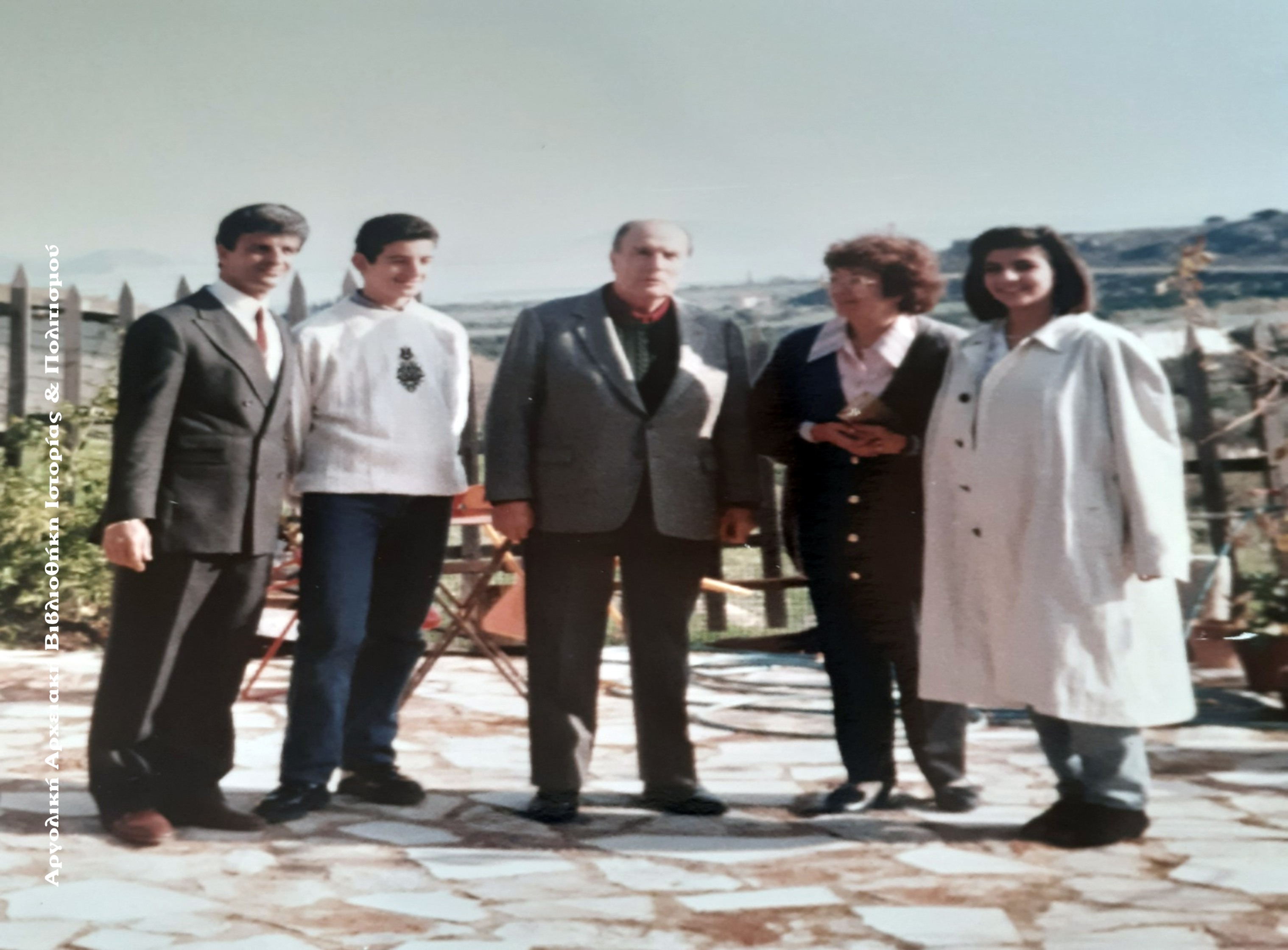 Ο Φρανσουά Μιτεράν με τον Δημ. Κωτσονάρο και την οικογένειά του στην αυλή του «βουκολικού» σπιτιού των Μύλων.