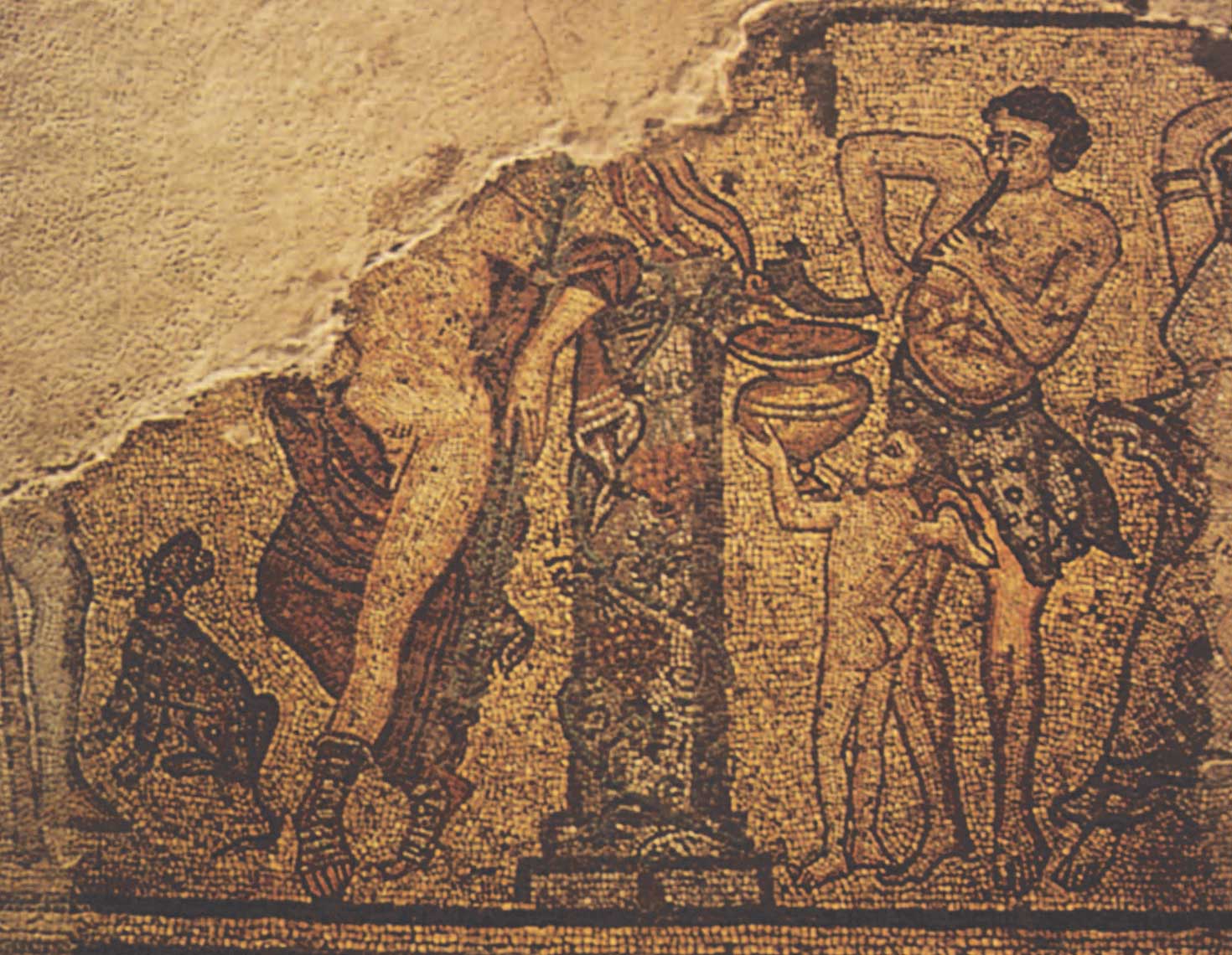 Αμπελοκαλλιέργεια και οινοπαραγωγή στη βυζαντινή Αργολίδα – Ιωάννης Δ. Βαραλής » Λεπτομέρεια του ψηφιδωτού στο τρικλίνιο της οικίας του Γερακάρη.