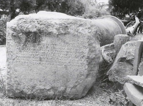 Ο ενεπίγραφος λίθος που ήρθε στο φως τον Ιούλιο του 1994. Πρόκειται για ένα ορθογώνιο λίθο από λευ¬κό ασβεστόλιθο, μεγάλων διαστάσεων και σχήμα τραπεζοειδές. Στην πρόσθια κύρια του όψη φέρει χαραγμένο το παρακάτω επιτύμβιο επίγραμμα με τίτλο «Φορωνέος».