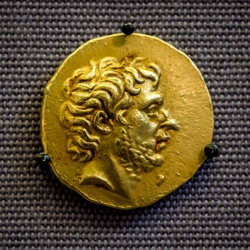 Ελληνικό νόμισμα που εικονίζει τον Ρωμαίο στρατηγό, Τίτο Κουίνκτιο Φλαμινίνο, (229 π.Χ. – 174 π.Χ.). Μακεδονία, περ. 197/196 (ή 191) π.Χ. Λονδίνο, Βρετανικό Μουσείο.
