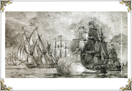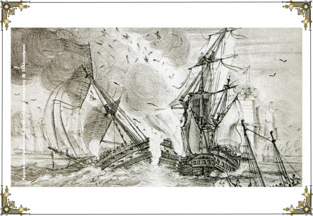 Πυρπόληση της Τουρκικής φρεγάτας στη ναυμαχία του Καφηρέα. Δημοσιεύεται στο: Ηλίας Ν. Γαλέττας – Μαρίκα Β. Μπουζουμπάρδη, «Σπέτσες, Ιστορία Λαογραφία», τόμος Ά, έκδοση, Ένωση Σπετσιωτών, 2004.