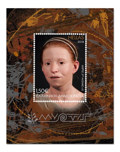 Το γραμματόσημο της Μύρτιδος – Αφιερωμένη στη Μύρτιδα, το κορίτσι του 5ου αιώνα π.Χ., θύμα του λοιμού των Αθηνών, το πρόσωπο της οποίας αναπλάστηκε στο επιστημονικό πρόγραμμα «Μύρτις: πρόσωπο με πρόσωπο με το παρελθόν» που ανέλαβε το πανεπιστήμιο Αθηνών, ήταν η αναμνηστική σειρά γραμματοσήμων Φεγιέ «Μύρτις», τα οποία κυκλοφόρησαν από τα Ελληνικά Ταχυδρομεία το 2018.