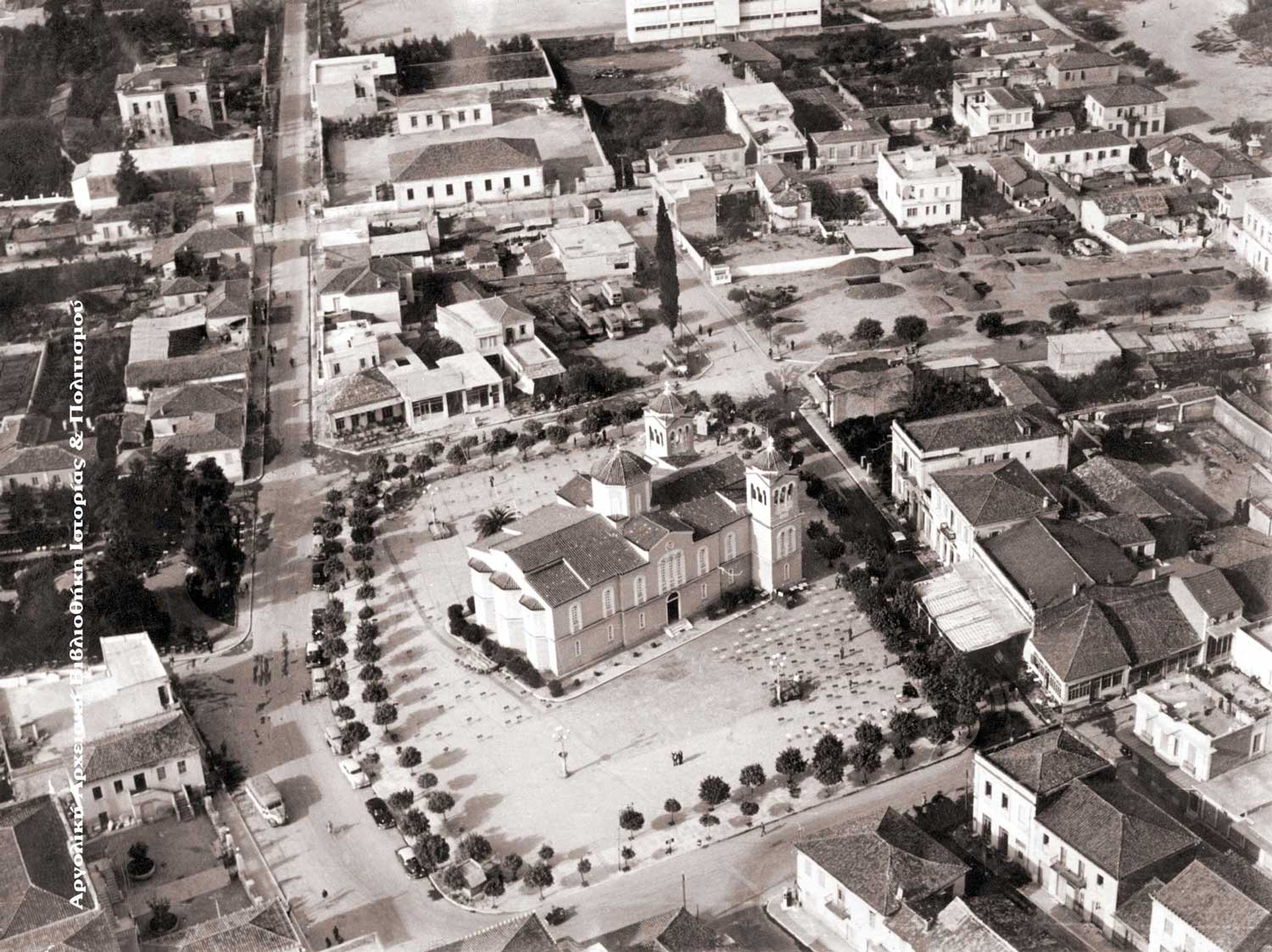 Αεροφωτογραφία του κέντρου του Άργους και της γύρω περιοχής από τα βορειοανατολικά, το 1956. Δημοσιεύεται στα: «Argos: Une ville grecque de 6000 ans», Marcel Piérart and Gilles Touchais, Παρίσι, 1996 και Ξηνταρόπουλος Πέτρος – «Η Αρχιτεκτονική της Κατοικίας στο Άργος το 19ο αιώνα», Έκδοση Πνευματικού Κέντρου Δήμου Άργους, 2006.