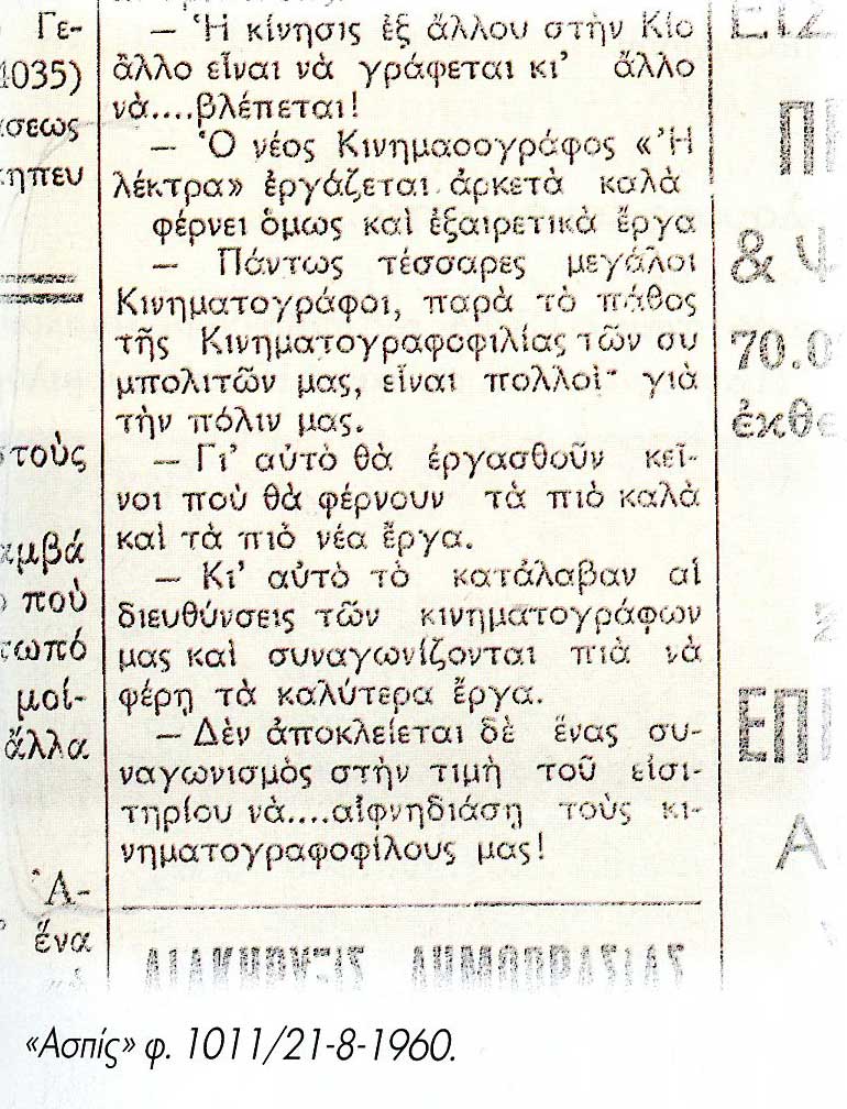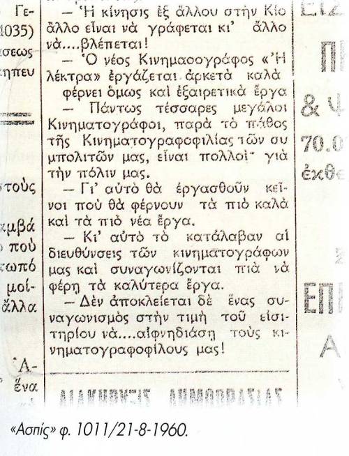 Η ιστορία του κινηματογράφου στο Άργος » «Ασπίς»-φ.-1011-21-8-1960.