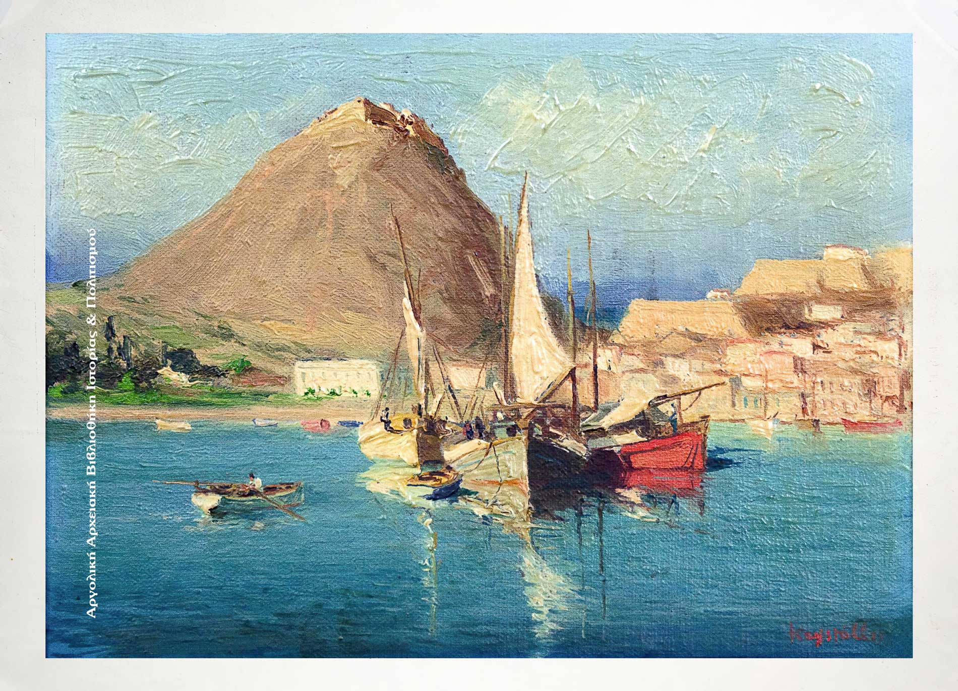 Ναύπλιο. Ελαιογραφία σε χαρτόνι, έργο του Ανδρέα Κρυστάλλη, δεκαετία 1930.