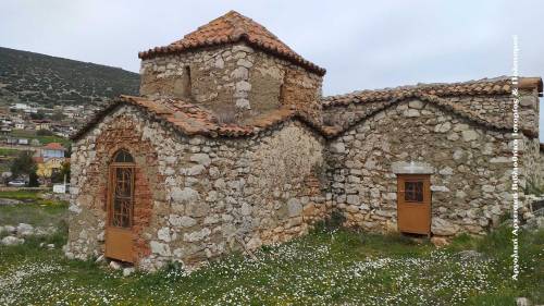 Το Καθολικό της ερειπωμένης σήμερα παλαιάς Μονή Ταλαντίου. Στη νότια πλευρά είναι προσκολλημένο το παρεκκλήσι της Αγίας Μαρίνας, έτσι τουλάχιστον από την παράδοση το ξέρουν οι κάτοικοι του Αραχναίου (Χελίου) γιατί κανένα σημείο του, δεν φανερώνει σε ποιόν Άγιο είναι αφιερωμένο. Και οι δύο Ναοί πρέπει να ανήκουν στον 12ο αιώνα. (Λήψη φωτογραφίας 14 Μαρτίου 2021).