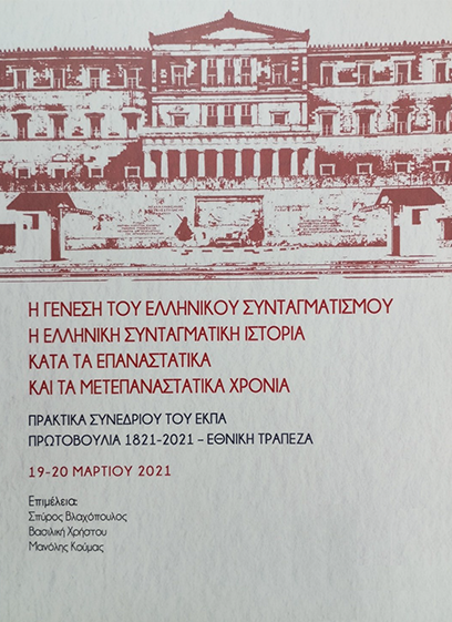 Παρουσίαση του τόμου: «Η Γένεση του Ελληνικού Συνταγματισμού, Η ελληνική συνταγματική ιστορία κατά τα επαναστατικά και μετεπαναστατικά χρόνια» » Η Γένεση του Ελληνικού Συνταγματισμού