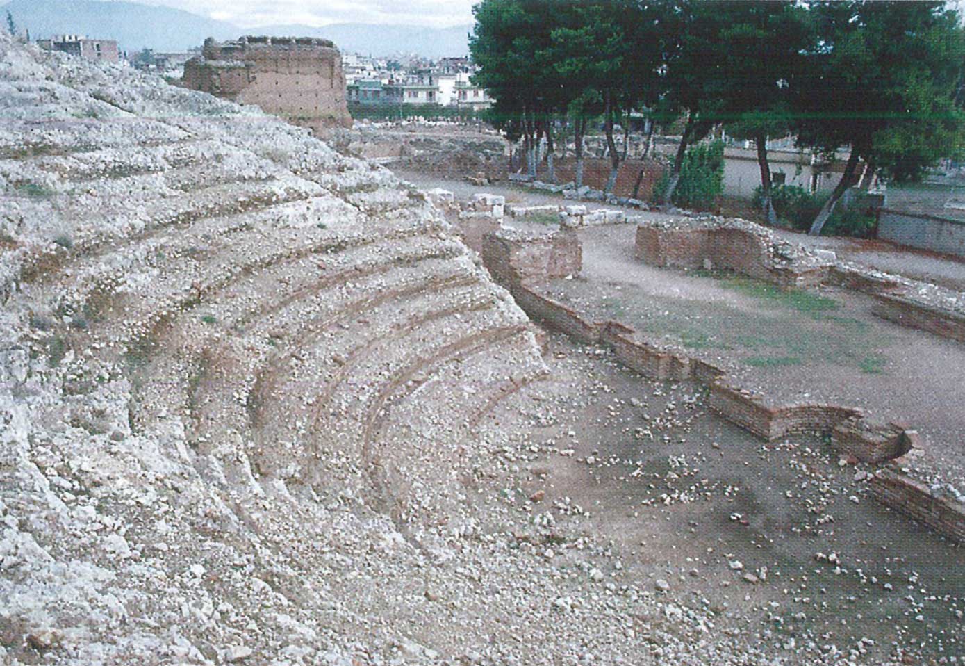 Το ρωμαϊκό ωδείο του Άργους από δυτικά (R.G. Chase, Ancient Hellenistic and Roman amphitheatres, stadiums and theatres: the way they look now, Portsmouth, N.H. 2002, σ. 579).