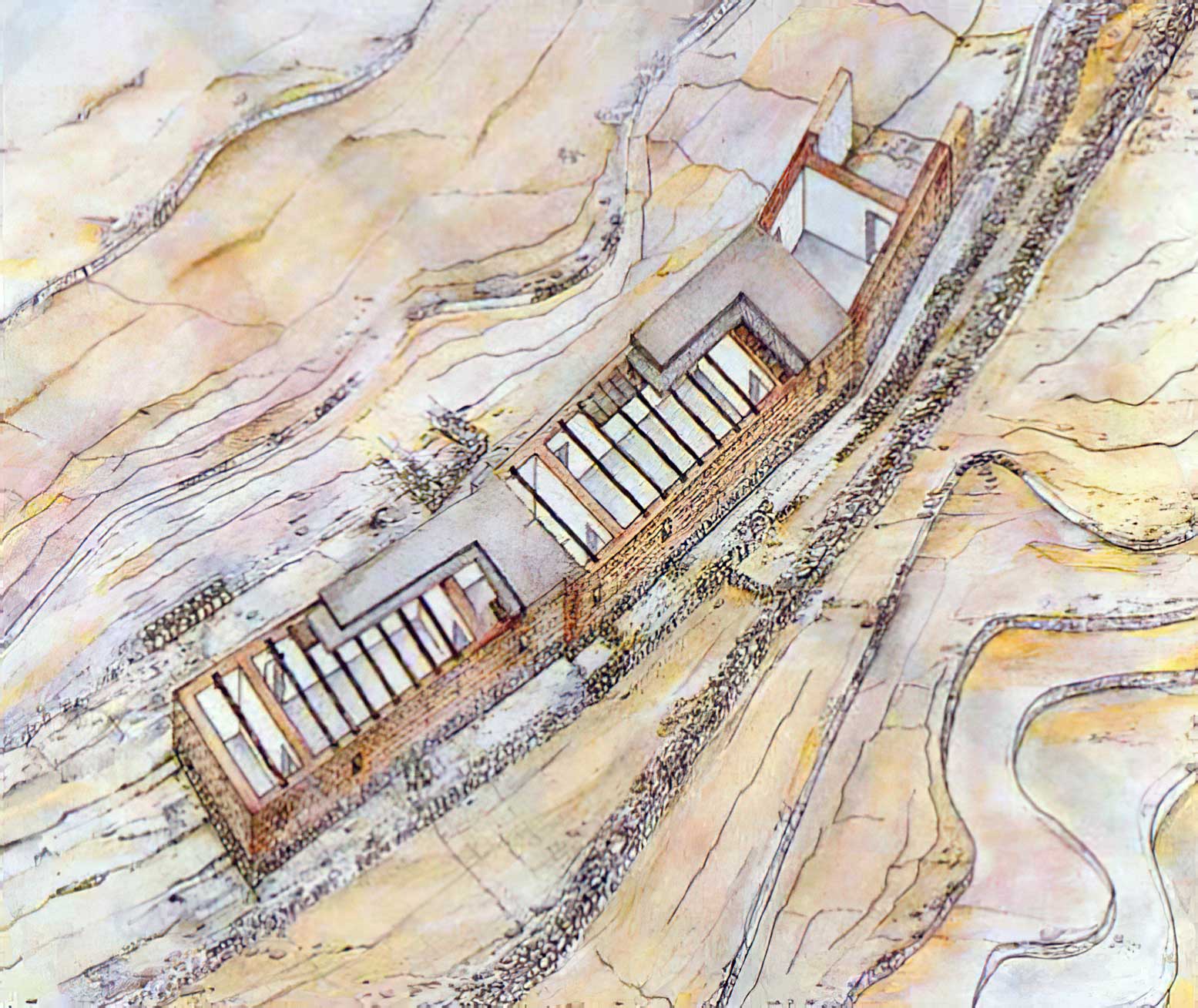 Εικ.7. Πρόταση αναπαράστασης του ορθογώνιου οικοδομήματος της ΜΕ ΙΙΙβ φάσης (σχ. Μ. Λαφαζάνη).