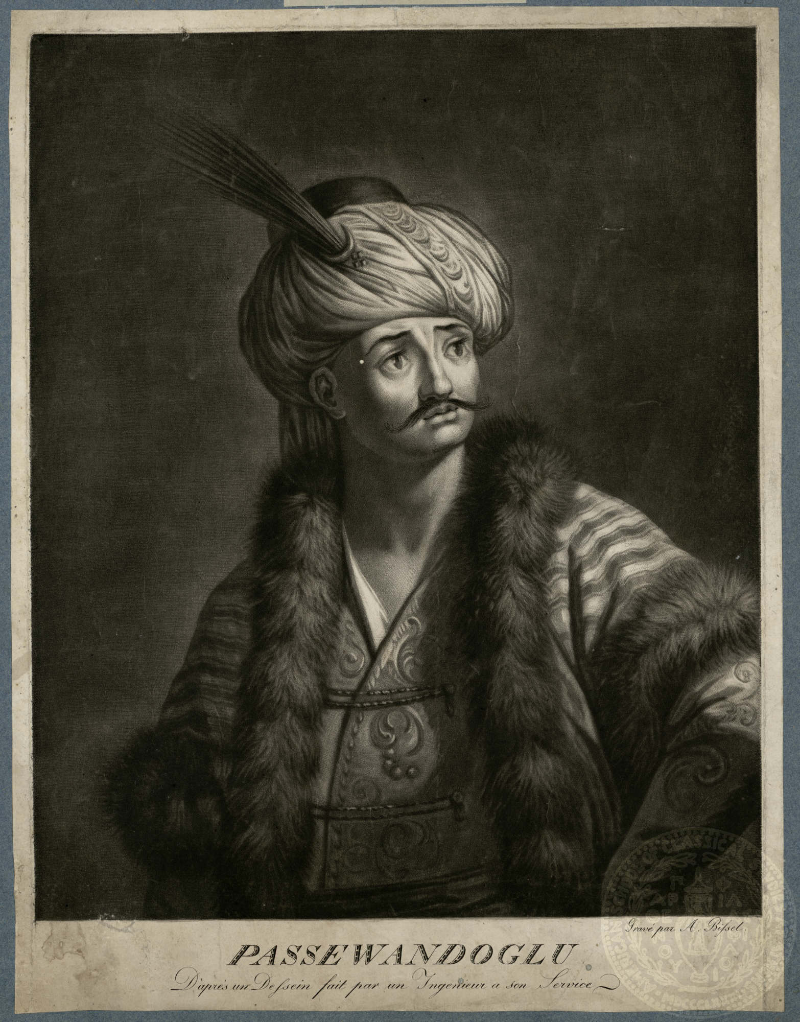 Οσμάν Πασβάνογλου (Pazvantoğlu, Osman, 1758-1807). Τούρκος τοπάρχης του Βιδινίου της Βουλγαρίας, σημαντική προσωπικότητα στο χώρο των Βαλκανίων στα τέλη του 18ου και τις αρχές του 19ου αι. Καταγόταν από καθολική οικογένεια της Βοσνίας, η οποία όμως είχε προσχωρήσει στο μωαμεθανισμό. Απεικονίζεται πολυτελώς ενδεδυμένος και με εντυπωσιακό καλυμμα κεφαλής διακοσμημένο με φτερά.