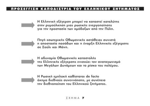 Ο Καποδίστριας δέχεται την σημασία της εμπλοκής της Ρωσίας σε μία πολεμική αναμέτρηση με τον Σουλτάνο και αναζητά τις προϋποθέσεις εμπλοκής της Ρωσίας σε αυτή την αναμέτρηση. (Σχήμα 7).