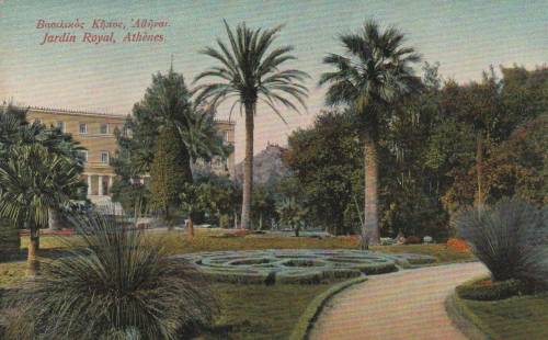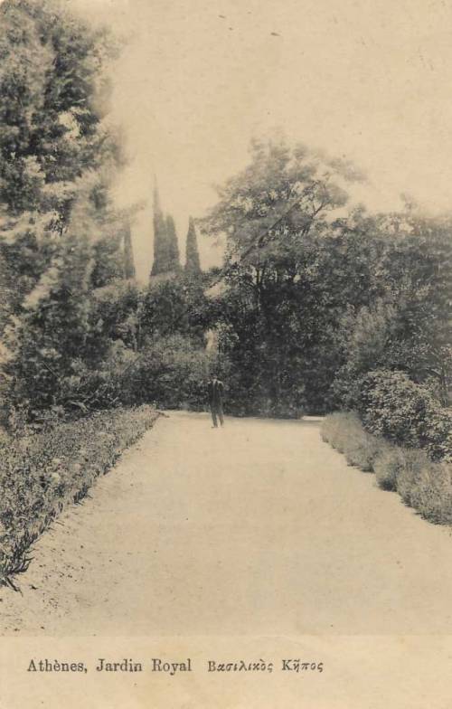Ο Βασιλικός Κήπος το 1891. Δημιουργήθηκε από τη βασίλισσα Αμαλία το 1838, στο διάστημα της 25χρονης παραμονής της στην Αθήνα (1837-1862). Η δημιουργία του Κήπου έμελλε να γίνει το μέγα έργο της, το οποίο παραμένει έως σήμερα βασικός πνεύμονας οξυγόνου της πρωτεύουσας.