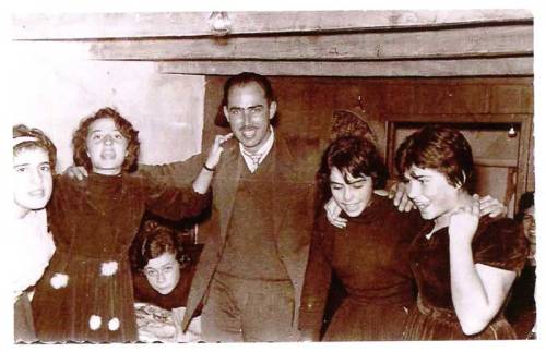 25-12-1960. Ο Στέφος ανάμεσα σε μια νεανική συντροφιά: Μαρία Μαρουλά, Χαριτίνη Σπετσιώτου, Αρχώ Σταματίου, Αναστασία Δημαράκη, Μαρία Χόντα.