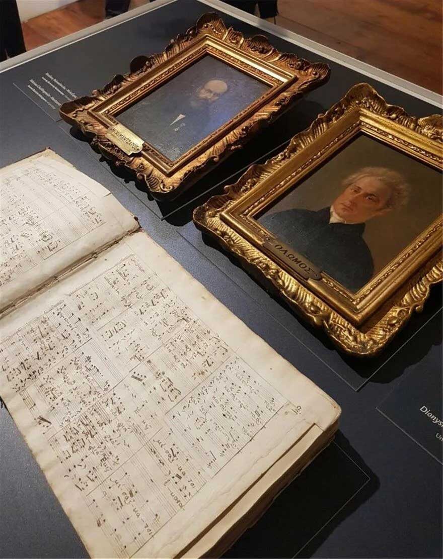 Χειρόγραφο της 2ης μελοποίησης του «Ύμνου εις την Ελευθερίαν», Δημοτική Πινακοθήκη Κέρκυρας. Πρόκειται για ένα πολυσέλιδο χειρόγραφο, του Νικολάου Χαλικιόπουλου-Μάντζαρου, που φυλασσόταν εδώ και 85 χρόνια στο θησαυροφυλάκιο του δήμου Κεντρικής Κέρκυρας, μετά τη δωρεά από τον τότε υπουργό Παιδείας Γεώργιο Παπανδρέου στον δήμο Κερκυραίων, το 1936.