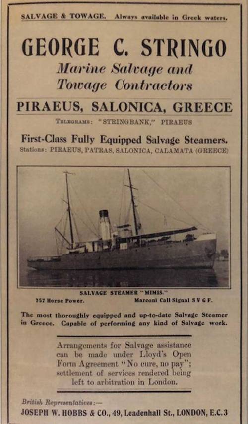 Δημιουργεί ναυαγοσωστική εταιρεία. Σημαντική δραστηριότητα, την οποία διατηρεί για πολλά χρόνια, είναι το ναυαγοσωστικό «ΜΙΜΗΣ», 257 τόνων, εξοπλισμένο με μέσα που το καθιστούσαν μοναδικό στη Μεσόγειο. Ιδρύει στην Αίγινα εταιρεία σπογγαλιείας που αντιπροσωπεύεται στο Λονδίνο. Απασχολείται ενεργά με το εμπόριο τερεβινθελαίου (νέφτι) και ρητινελαίου. Οι εξαγωγές απαγορεύονται λόγω της παγκόσμιας οικονομικής κρίσης, γιατί το νέφτι γίνεται είδος πρώτης ανάγκης, με αποτέλεσμα η τιμή του να εκτιναχθεί από τη μία στις τρεις δραχμές η οκά (1929).