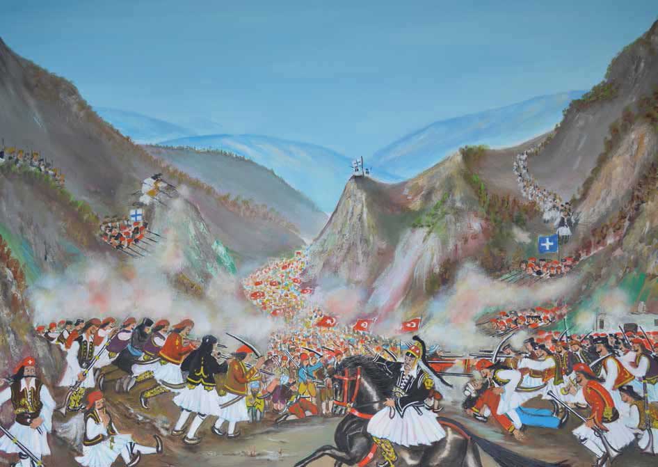 «Οι αγώνες των Ελλήνων για την ελευθερία» – Έκθεση λαϊκής ζωγραφικής του Νώντα Ρεντζή στο Πολεμικό Μουσείο Ναυπλίου » Μάχη στα Δερβενάκια.