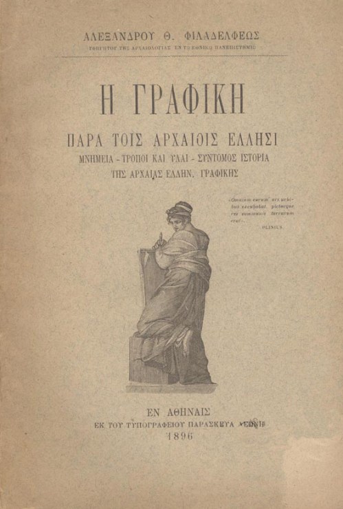 Φιλαδελφεύς, Αλέξανδρος: «Η γραφική παρά τοις αρχαίοις Έλλησι» (εκ του τυπογραφείου Παρασκευά Λεωνή, 1896 – 1η έκδ.) [μνημεία – τρόποι και ύλαι – σύντομος ιστορία της αρχαίας ελλην. γραφικής. Αλεξάνδρου Θ. Φιλαδελφέως, υφηγητού της αρχαιολογίας εν τω Εθνικώ Πανεπιστημίω].