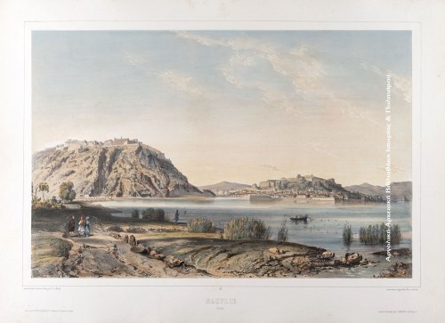 Άποψη του Ναυπλίου, επιχρωματισμένη λιθογραφία. Σχεδίασε εκ του φυσικού και χάραξε ο Théodose ή Théodore Achille Louis Vicomte du Moncel, Παρίσι, 1845.