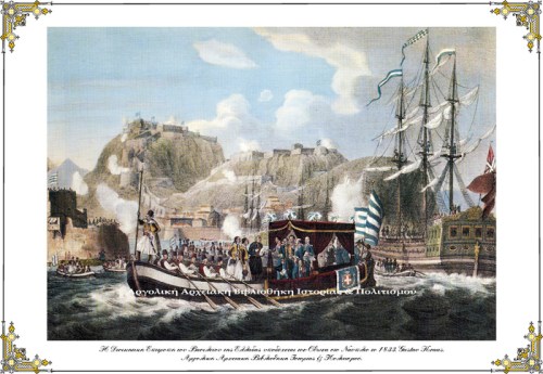 Στις 25 Ιανουαρίου 1833 με το παλιό ημερολόγιο ή στις 6 Φεβρουαρίου με το νέο ο Όθωνας πατά το ελληνικό έδαφος στο Ναύπλιο ως βασιλεύς της Ελλάδος. Το γεγονός εορτάζεται με μεγαλειώδη για τα δεδομένα του τόπου και της εποχής τελετή.