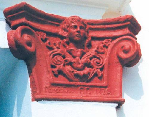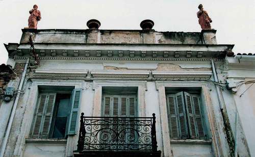 Εικόνα 3. Τα διακοσμητικά στοιχεία ήταν συνυφασμένα με την αρχιτεκτονική. Εδώ διακρίνουμε αέτωμα με ανάγλυφο γυναικείο κεφάλι (οικία Θ. Μπόμπου, πριν την πρόσφατη αναπαλαίωση, επί της οδού Βασ. Σοφίας 22).
