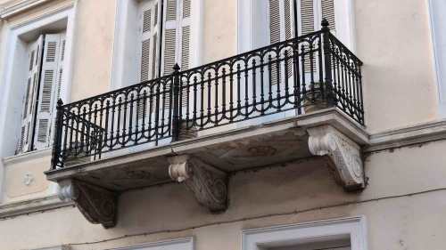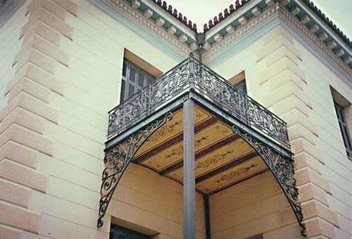 Ιδιαίτερο ενδιαφέρον παρουσιάζει το μπαλκόνι του πρώτου ορόφου, το οποίο ευρίσκεται ακριβώς στο κέντρο της πρόσοψης. Είναι στενό, λιγότερο από μέτρο, και σχετικά κοντό. Ανάλογα με το μήκος του στηρίζεται σε δύο ή τέσσερα και σπανιότερα σε τρία στηρίγματα. Αυτά είναι τα περίφημα φουρούσια, πέτρινα ή συνήθως μαρμάρινα. Κτίζονται μέσα στο ντουβάρι και είναι ιδιαίτερα ανθεκτικά, αφού προορισμός τους είναι να σηκώνουν αρκετό βάρος. Όμως, το τμήμα που προεξέχει, αυτό που φαίνεται, είναι ιδιαίτερα φροντισμένο, έργο λεπτής τέχνης και γλυπτικής επεξεργασίας. Δίδει την αίσθηση ότι ο προορισμός του δεν είναι λειτουργικός αλλά καθαρά διακοσμητικός. Τα φουρούσια συνήθως είναι ελικοειδή και φέρουν ανάγλυφες παραστάσεις: ελικοειδή σχήματα και γραμμές, που στην άκρη μάς θυμίζουν το ιωνικό κιονόκρανο, αυλακώσεις, ρόδακες, φύλλα. Επάνω στα φουρούσια τοποθετούνται χοντρές μαρμάρινες πλάκες, οι οποίες αποτελούν το δάπεδο του μπαλκονιού. Τέλος, μπαίνει το κάγκελο από χυτό σίδερο. Και εδώ βασικό χαρακτηριστικό είναι η συμμετρία ανάμεσα στα διάφορα διακοσμητικά στοιχεία. Τα ομορφότερα κιγκλιδώματα μπαλκονιού από όσα έχουμε δει είναι ίσως στο μέγαρο του «Δαναού» και στο Κωνσταντοπούλειο (εικ. 4).