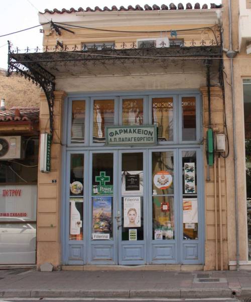 [11] Ο Αποστ. Παπαγεωργίου διαδέχτηκε στο φαρμακείο τον πατέρα του Δημήτρη (†1986), ο οποίος το είχε αγοράσει το 1958 από τον Αθανάσιο Νικ. Ολύμπιο, αδελφό του δικηγόρου και δημοσιογράφου Κων/νου Ολύμπιου. Ο Ολύμπιος το είχε αγοράσει το 1869 από το Νικ. Θανόπουλο. Φυσικά, τότε στεγαζόταν αλλού. Πρόκειται για το παλιότερο ίσως φαρμακείο της πόλης μας.