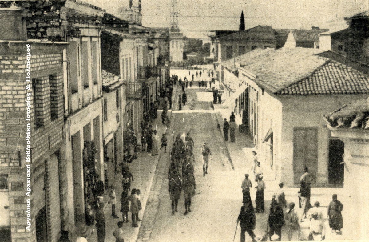 Η οδός Ερμού, σημερινή Παν. Τσαλδάρη «Εμπορικός δρόμος», μετονομασθείσα εις οδόν των εφόρον της Κομητείας Λος Άντζελες. Δημοσιεύεται στο: «Η Πόλις του Άργους από των μυθικών χρόνων μέχρι σήμερον», Έκδοσις του Δήμου Άργους δια το Σώμα των Εφόρων της Κομητείας του Λος Άντζελες των Ηνωμένων Πολιτειών, Άργος 1945.