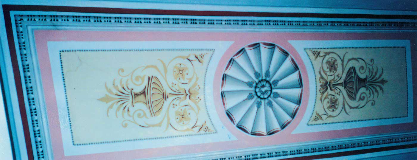 Εικ. 8. Η θαυμάσια διατηρημένη οροφογραφία της εισόδου της οικίας Μαρίας Καραγιαννοπούλου.
