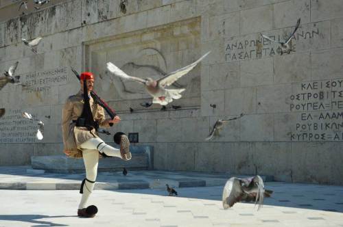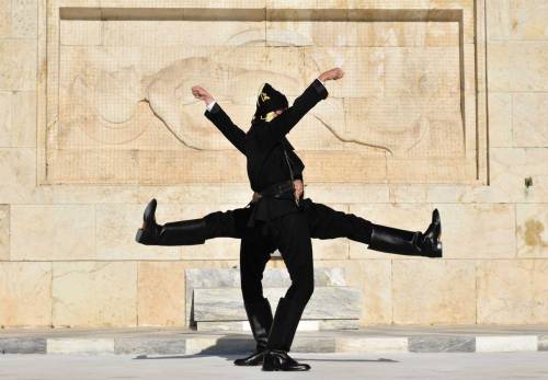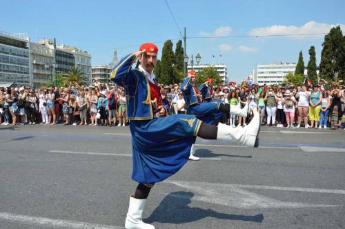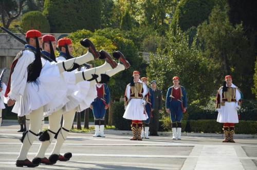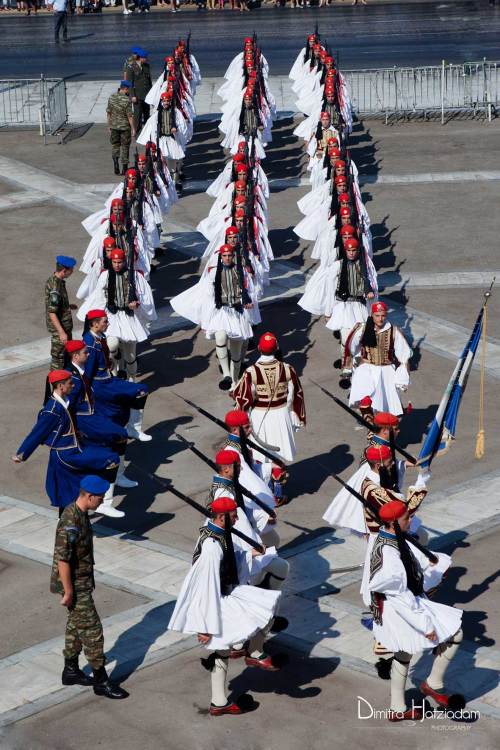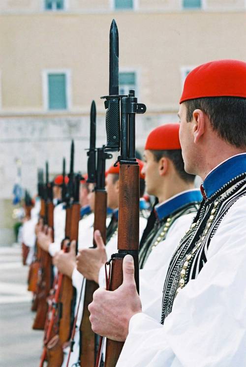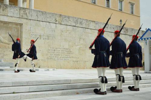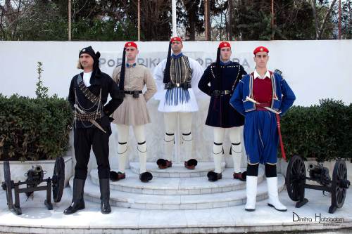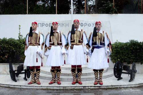 Άγημα Ευζώνων στο Μνημείο του Αγνώστου Στρατιώτη. Φωτογραφία Χατζηαδάμ Δήμητρα, «Εύζων», Λεύκωμα φωτογραφιών, Λυχνία, Αθήνα (υπό έκδοση).