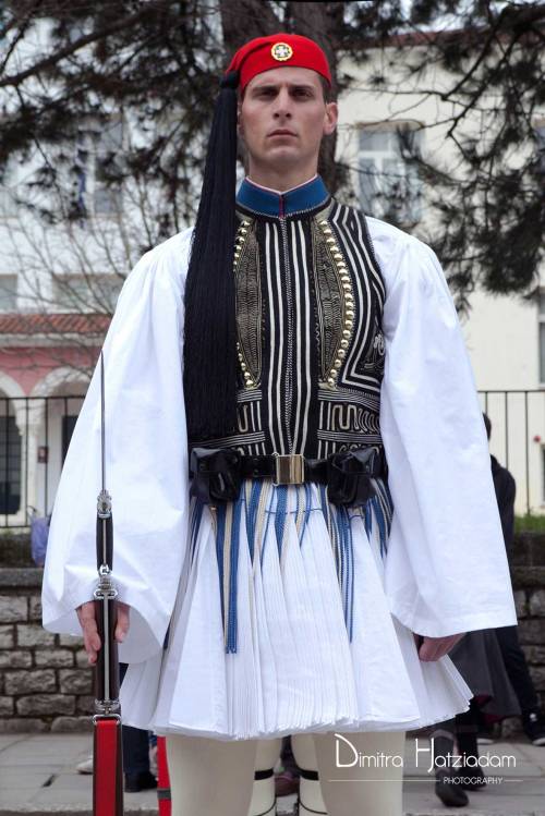 Παρέλαση Ευζώνων στα Γιάννενα. Φωτογραφία Χατζηαδάμ Δήμητρα, «Εύζων», Λεύκωμα φωτογραφιών, Λυχνία, Αθήνα (υπό έκδοση).