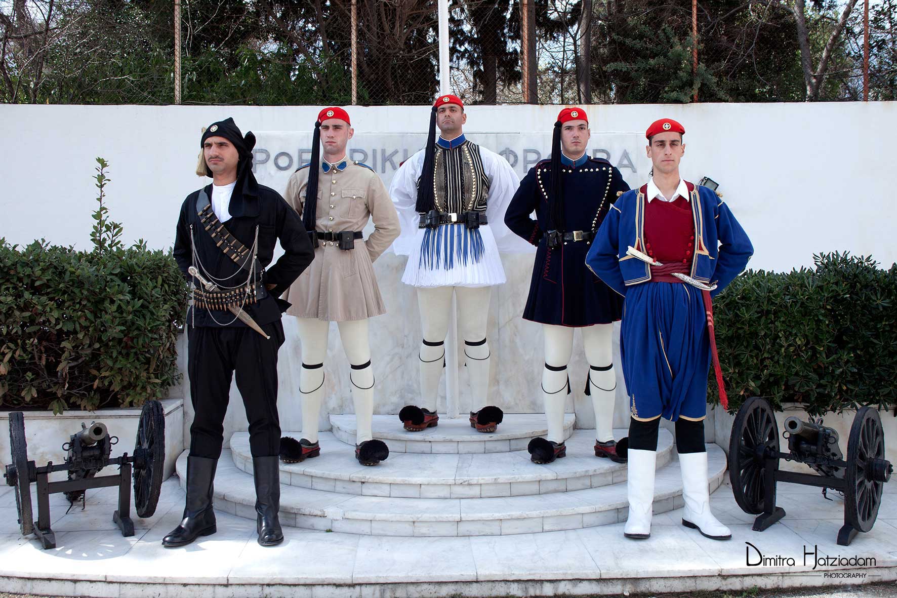 Εύζωνες στην Προεδρική Φρουρά. Φωτογραφία Χατζηαδάμ Δήμητρα, «Εύζων», Λεύκωμα φωτογραφιών, Λυχνία, Αθήνα (υπό έκδοση).