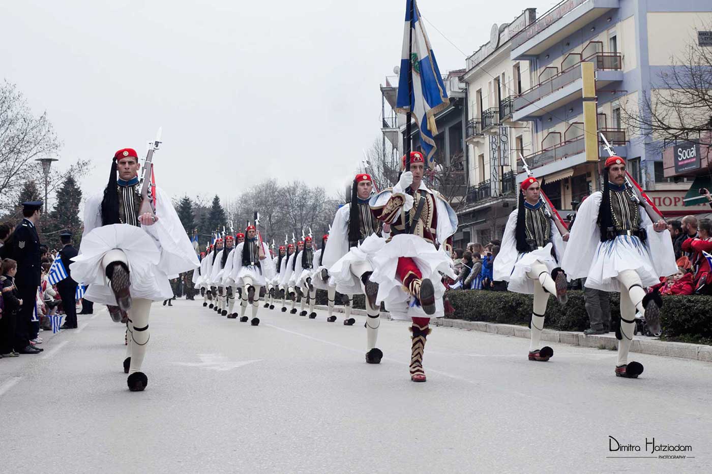 Παρέλαση Ευζώνων στα Γιάννενα. Φωτογραφία Χατζηαδάμ Δήμητρα, «Εύζων», Λεύκωμα φωτογραφιών, Λυχνία, Αθήνα (υπό έκδοση).