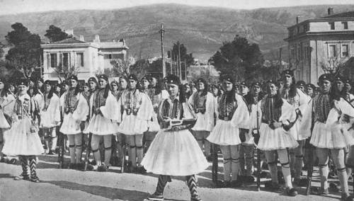 Εύζωνες, Φωτογραφία του διακεκριμένου Βρετανού φωτογράφου Alexander Lamont Henderson. προσωπικού φωτογράφου της βασίλισσας Βικτωρίας, κατά τη διάρκεια της επίσκεψής του στη χώρα μας στις αρχές του 1904. Μουσείο Μπενάκη.