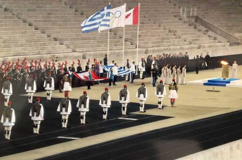 Ολυμπιακή φλόγα στο Παναθηναϊκό Στάδιο, 2009. Η φωτογραφία δημοσιεύεται στον ιστότοπο της Προεδρίας της Ελληνικής Δημοκρατίας.