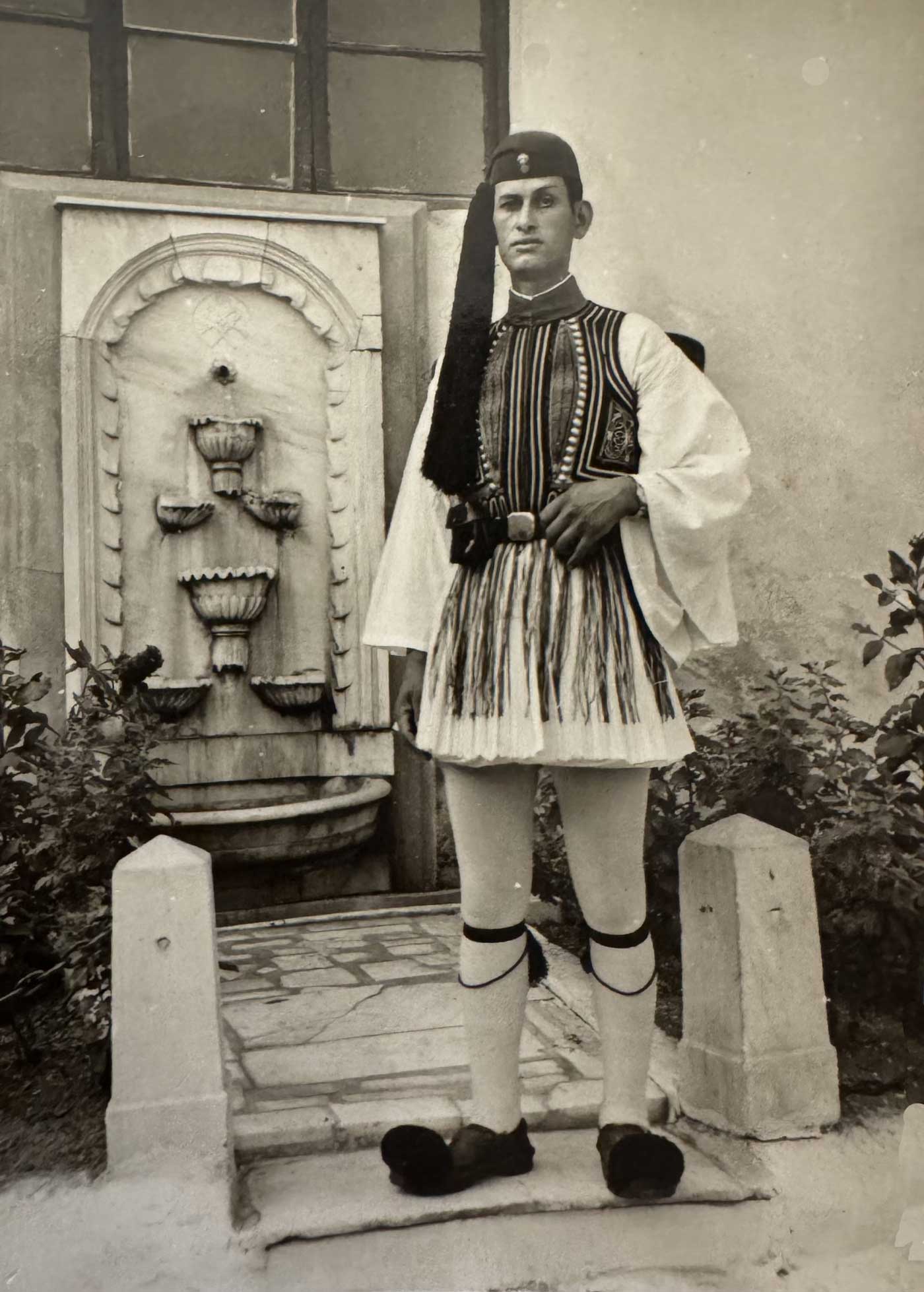 Εύζωνας Αθανάσιος Κυριάκου, 1957-58. Η φωτογραφία δημοσιεύεται στον ιστότοπο της Προεδρίας της Ελληνικής Δημοκρατίας.