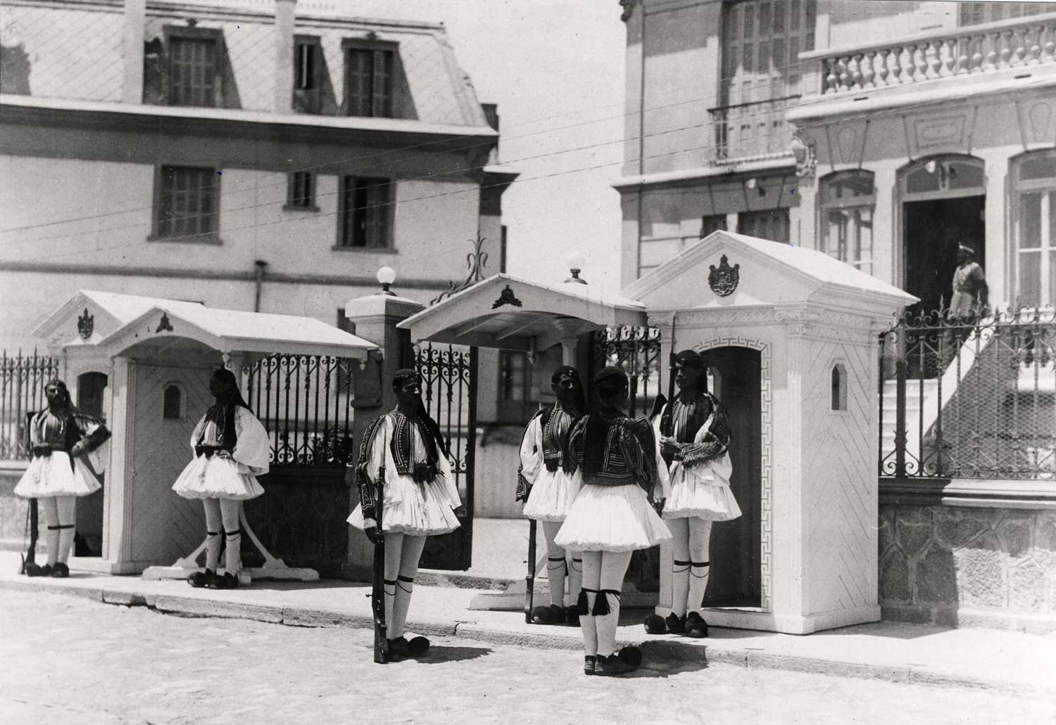 Εύζωνες μπροστά από το αρχηγείο στη Σμύρνη.